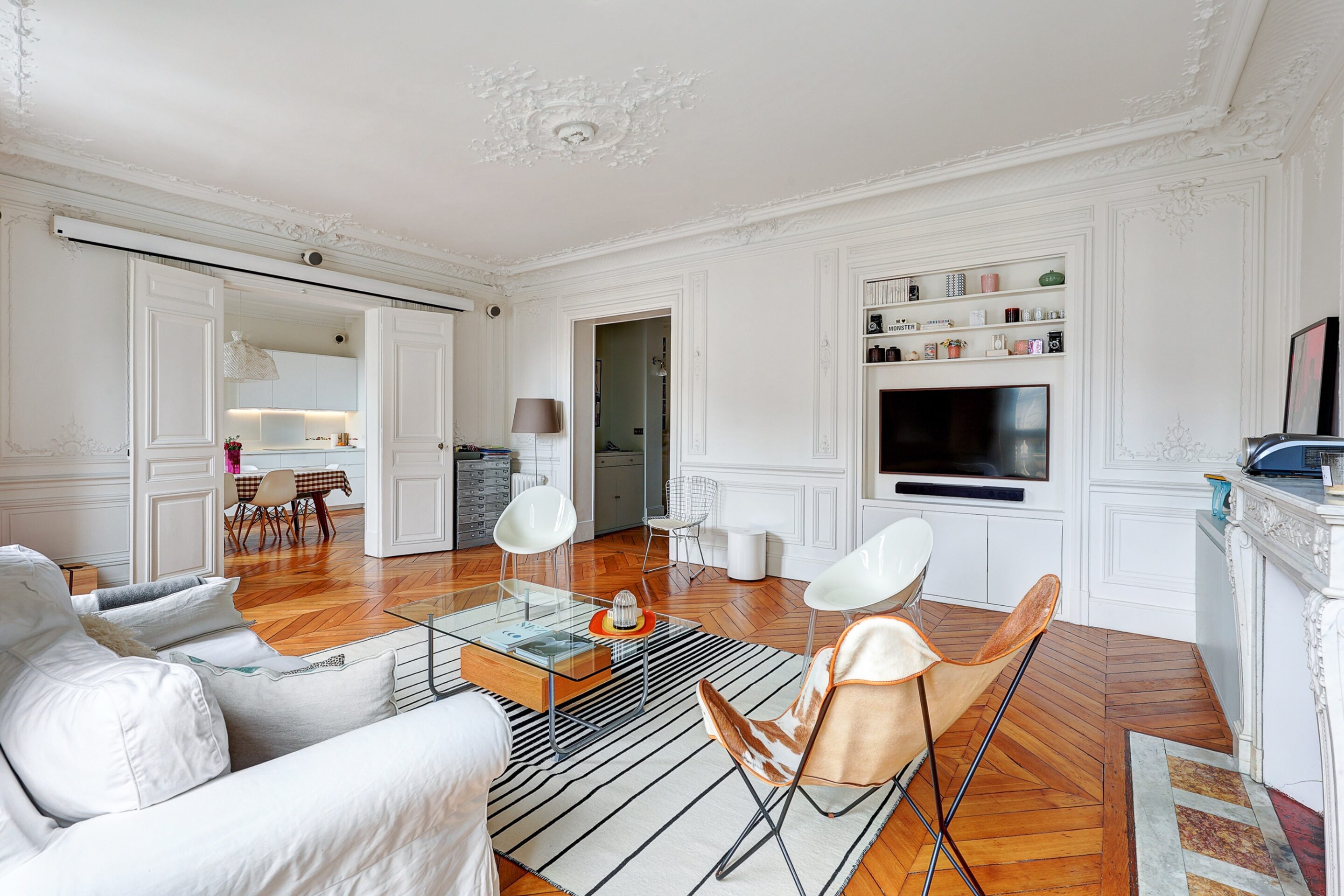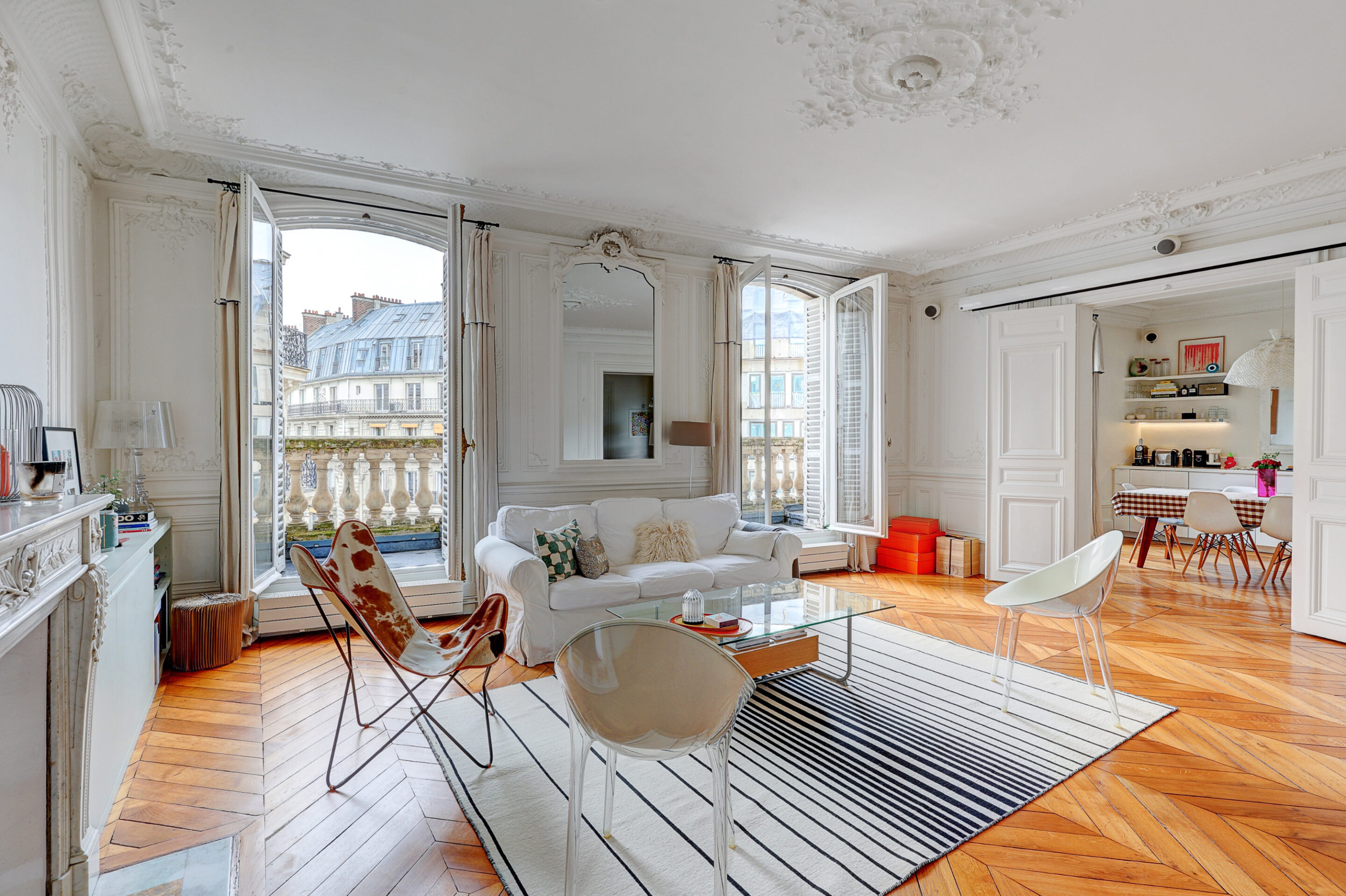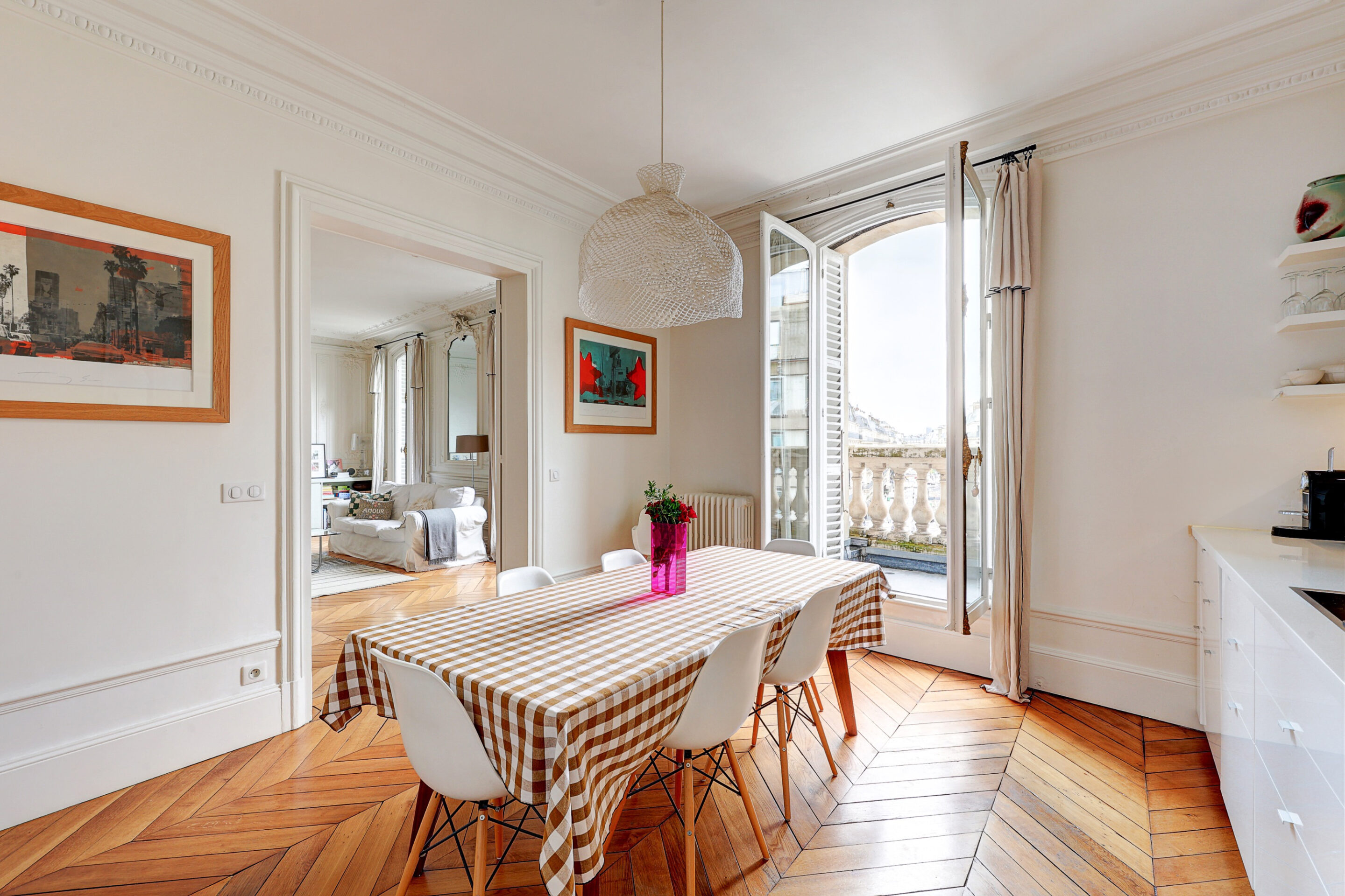 We propose this beautiful 110m2 family apartment for rent in the 9th arrondissement of Paris. Decorated with care and originality, the beautiful spaces and Haussmann-style moldings will immerse you in the authentic charm of a typical Parisian apartment