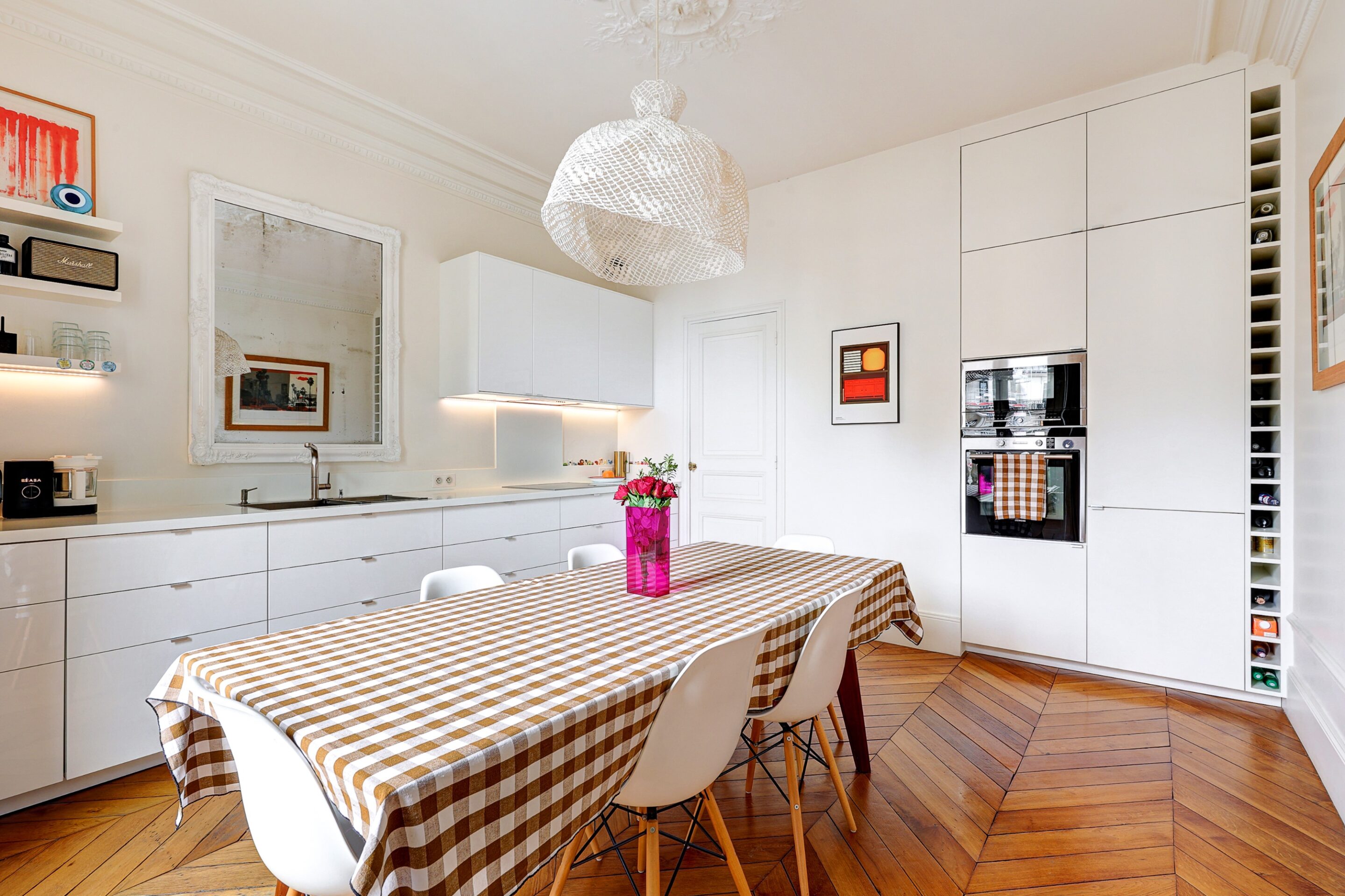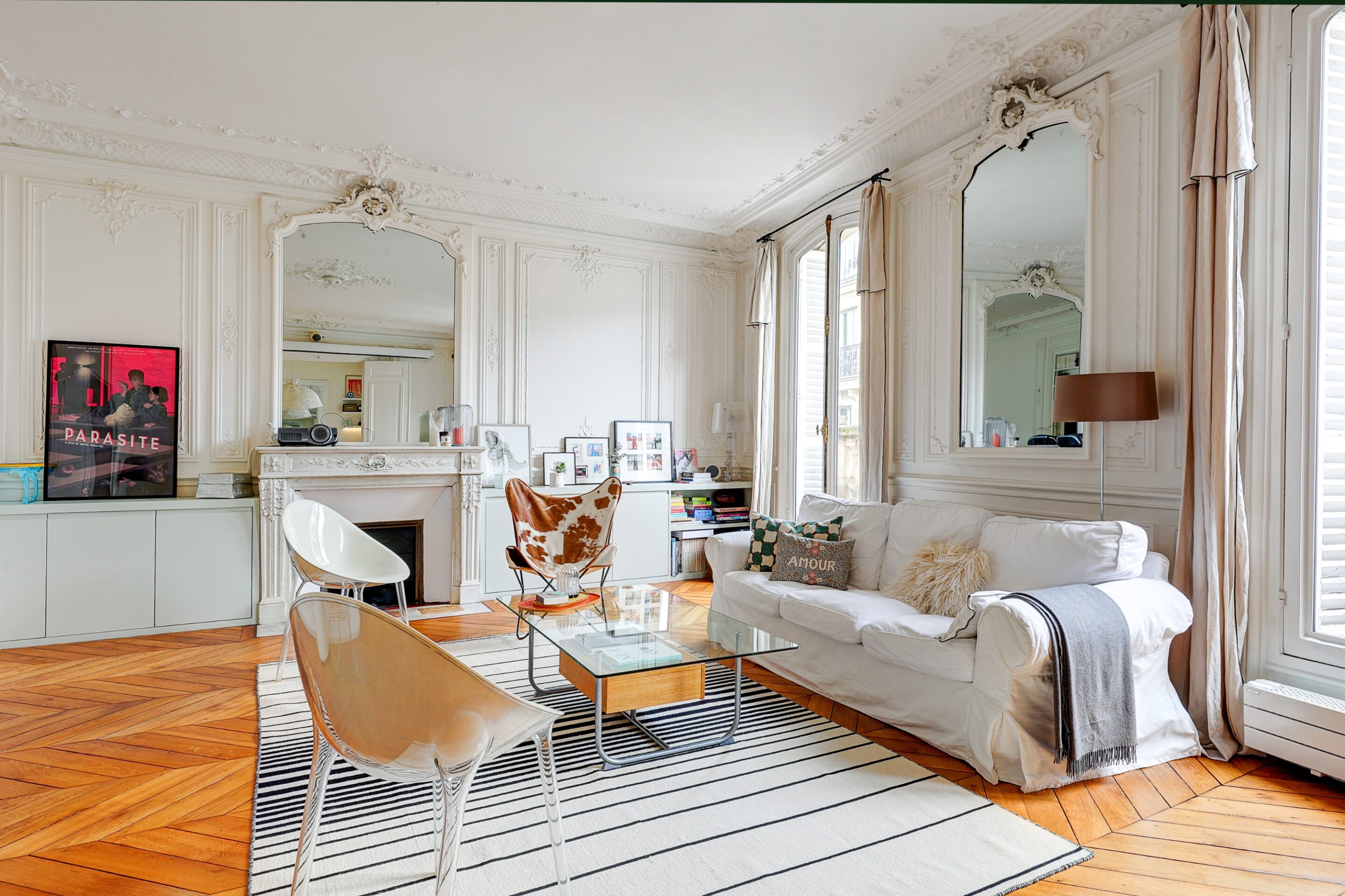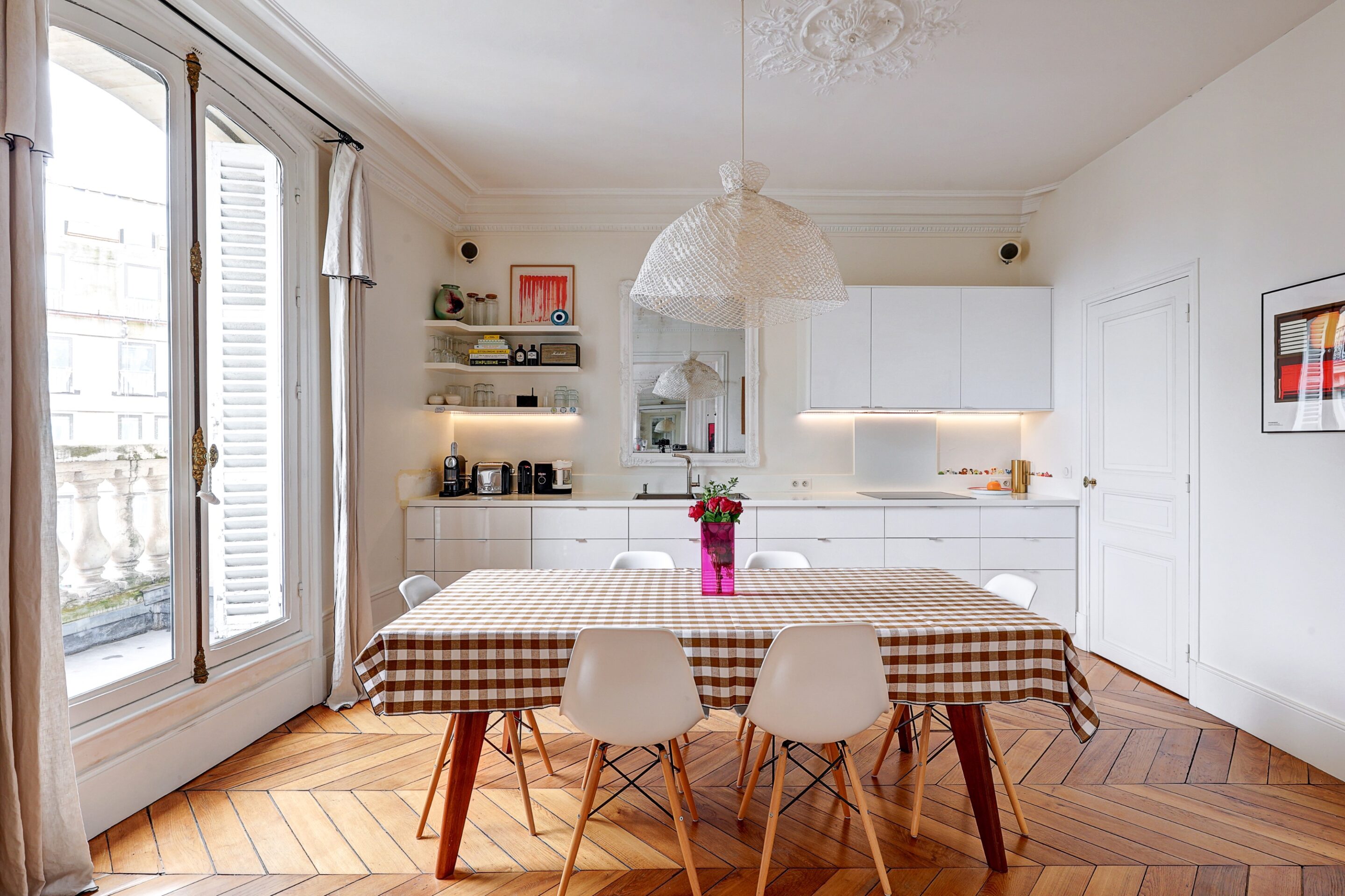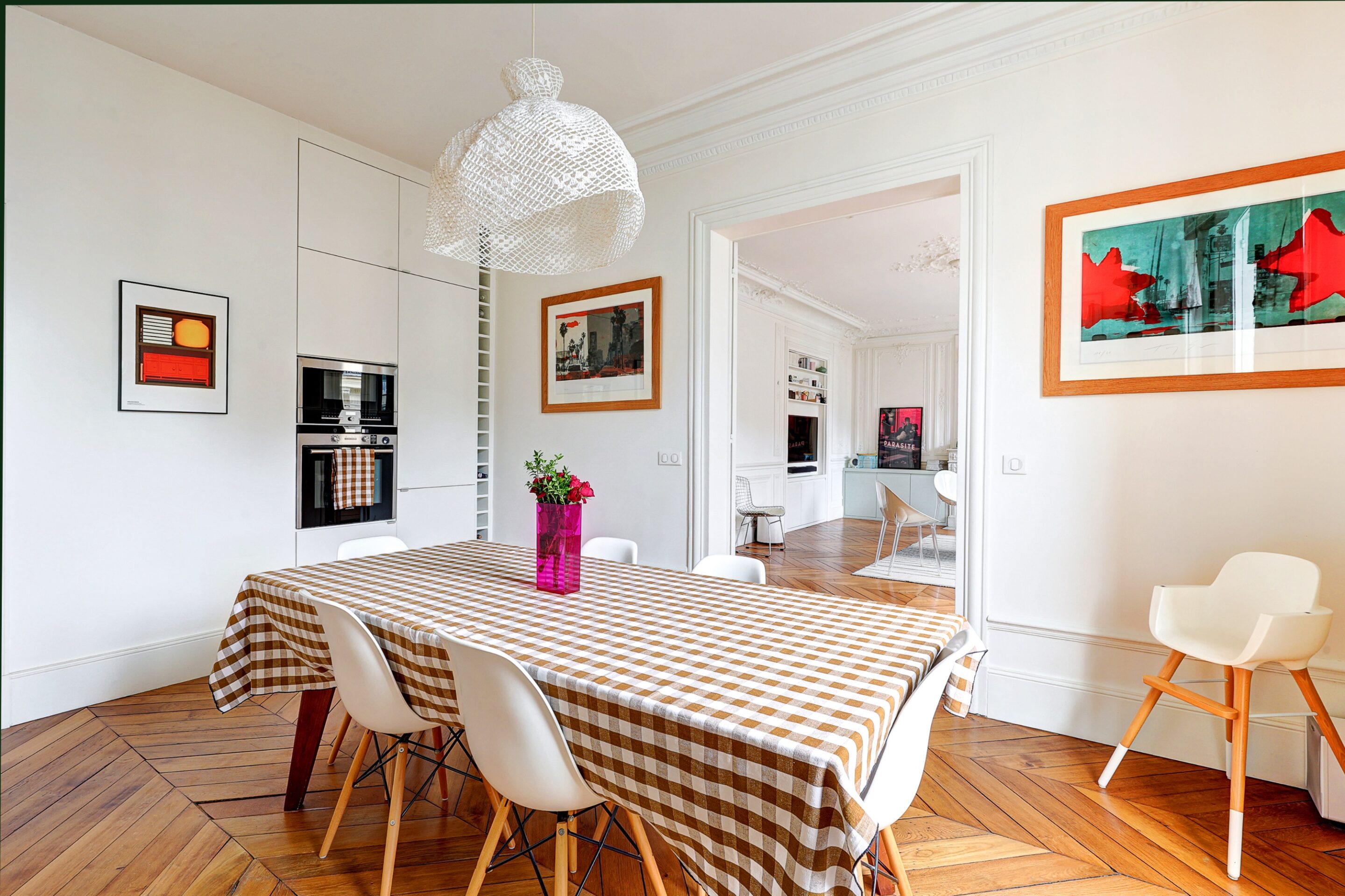 We propose this beautiful 110m2 family apartment for rent in the 9th arrondissement of Paris. Decorated with care and originality, the beautiful spaces and Haussmann-style moldings will immerse you in the authentic charm of a typical Parisian apartment
